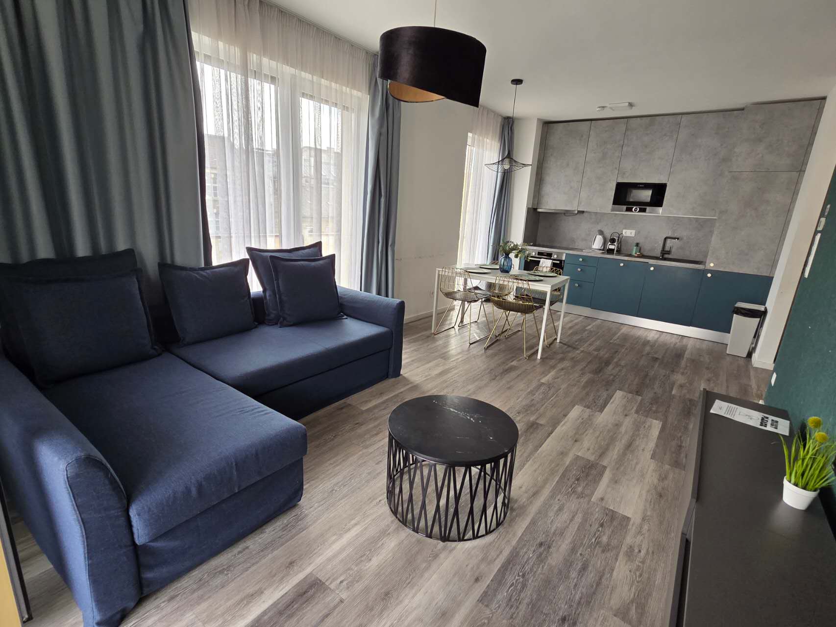 - Spacious living room with open-plan kitchen